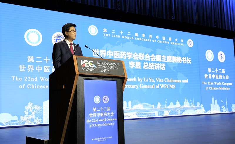 Mr. LI Yu, Vice Chairperson and Secretary-General of WFCMS, delivered a concluding speech. On behalf of WFCMS, he expressed the most sincere gratitude to all the experts, scholars, distinguished guests, representatives, the organizing committee—the Australia Tradition Chinese Medicine Charitable Association—as well as all staff and volunteers whose hard work contributed to the success of the Congress. He stated that the Congress received high-level attention and support from institutions including the Therapeutic Goods Administration of Australia, the Chinese Medicine Board of Australia, the Embassy of the People's Republic of China in Australia, the Consulate General of the People's Republic of China in Sydney, the National Administration of Traditional Chinese Medicine of China, and the World Health Organization. This reflects the international community's high recognition and shared expectations for the value of Chinese medicine. In his speech, he comprehensively reviewed the academic outcomes and organizational achievements of this Congress, noting that important consensus was reached in promoting the international standardization, technological innovation, and cultural dissemination of Chinese medicine. The 22nd WCCM was not only an academic gathering but also a dialogue among civilizations and a launchpad for cooperation. Together, we witnessed the deepening global influence of Chinese medicine and further strengthened our confidence and determination to promote its worldwide advancement. The new journey calls for new actions. Let us take this Congress as a new starting point, continue to uphold tradition while innovating, remain open and inclusive, deepen international cooperation, strengthen scientific research, improve standard systems, and promote Chinese medicine to better serve human health, contributing more "Chinese medicine wisdom" and "Chinese medicine strength" to building a global community of health for all.
