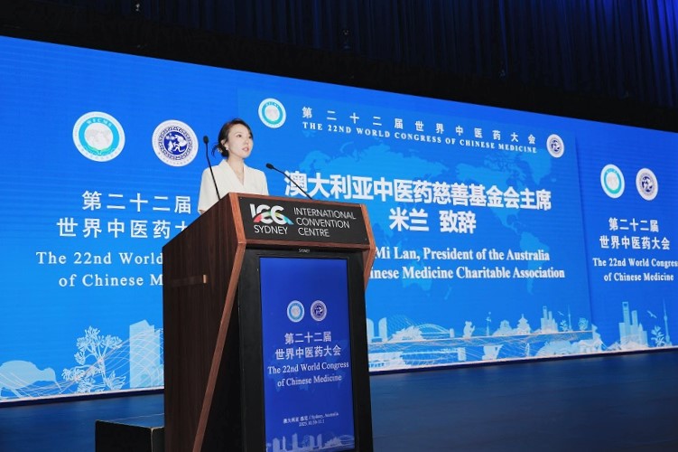 Ms. MI Lan, President of the Australia Tradition Chinese Medicine Charitable Association, delivered a speech on behalf of the organizer, thanking WFCMS and all supporting parties. She expressed commitment to continue promoting the deep integration and development of Chinese medicine in Australia, supporting its internationalization process.