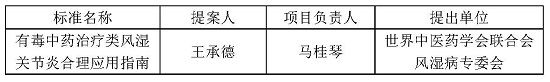 世界中医药学会联合会分支机构标准《有毒中药治疗类风湿关节炎合理应用指南》立项通知