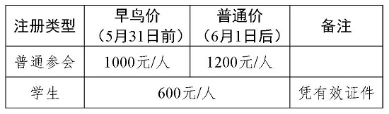 注:①注册费含资料费及会议期间餐费;②交通和住宿费用自理,按规定回单位报销; ③在校学生现场报到时须出示带照片的学生证,否则现场按照普通价补缴注册费。