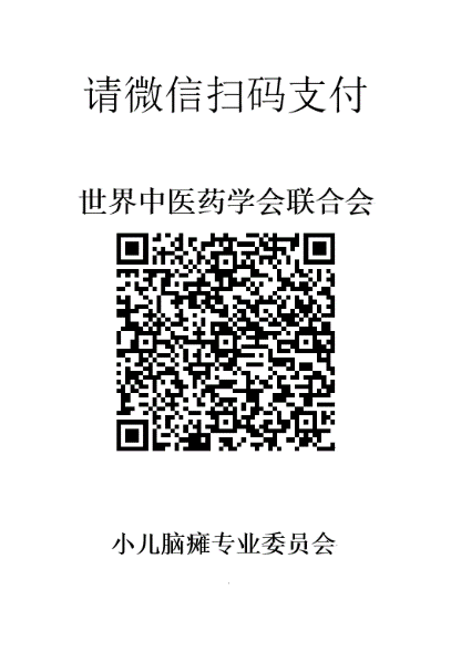 (一)微信扫码:微信扫描下方缴费二维码,提交注册信息并完成缴费,支付时请备注:小儿脑瘫+姓名+手机号。