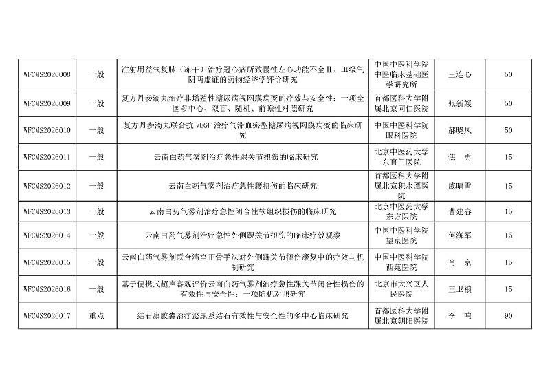 世界中医药学会联合会关于对2026年世界中医药科技专项第一批项目拟立项项目的公示