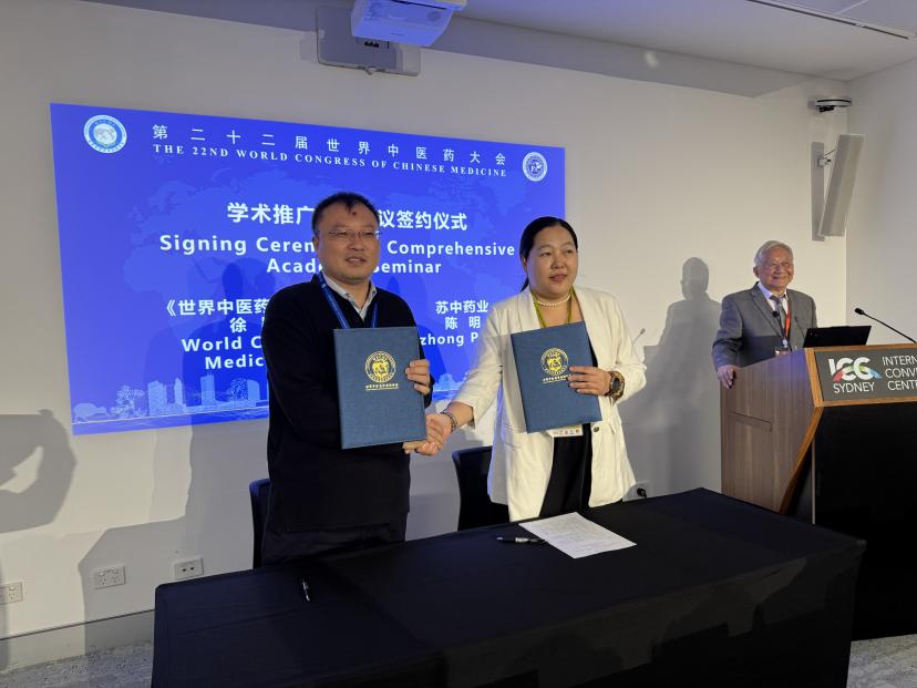 会议举办了第22届世界中医药大会签约专场。由汪受传教授主持,《世界中医药》杂志社社长徐颖与苏中药业集团股份有限公司总监陈明代表双方签署了学术推广合作协议,携手共促中医药传承创新。