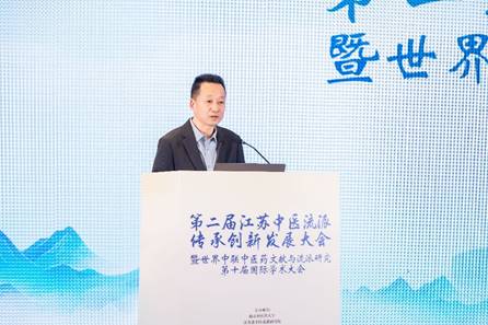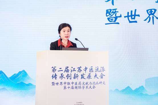 赵霞教授在致辞中简要介绍了南京中医药大学及江苏中医流派研究院的发展情况。她指出,南中医高度重视中医流派研究,系统开展了文献研究与学术挖掘并启动了中医医案大典编纂及中医大模型研发等工作。她强调,要汇聚各方智慧,运用人工智能等现代科学技术推动流派传承创新,促进中医流派学术繁荣与成果转化,让千年医脉焕发时代生机。