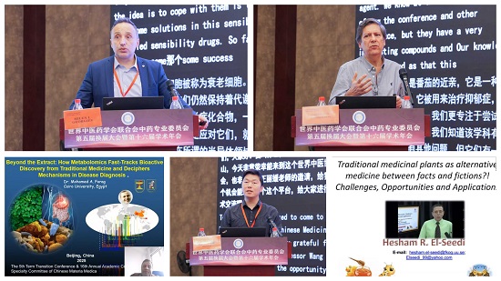 本届大会学术报告国际性突出,美国Aipinity Inc.首席执行官苏醒先生聚焦于利用AI技术解决中医在欧美市场的保险申报和合规运营痛点,通过将中医诊疗“翻译”成医保体系认可的标准,帮助中医融入美国主流医疗体系并实现规模化发展。保加利亚MILEN I. GEORGIEV教授从系统生物学的角度,科学阐释了天然产物在调节代谢、促进健康防衰老方面的作用机制。葡萄牙米尼奥大学Alberto Carlos Pires Dias教授通过体外和体内实验证明“药食同源”植物活性成分能通过抗氧化、抗炎及维持钙稳态等机制,有效对抗神经退行性疾病。埃及开罗大学Mohamed A. Farag教授从代谢组学角度深入解析了如何加速从传统药材中发现生物活性成分的新方法,并阐释其在疾病诊断中的作用机制,为传统医学研究开辟了新视角。瑞典乌普萨拉大学Hesham R. El-Seedi教授全面回顾了天然产物研究从古至今的演进历程,深入探讨了其全球化发展趋势,为推动中医药与天然产物的国际化研究提供了新的思路。