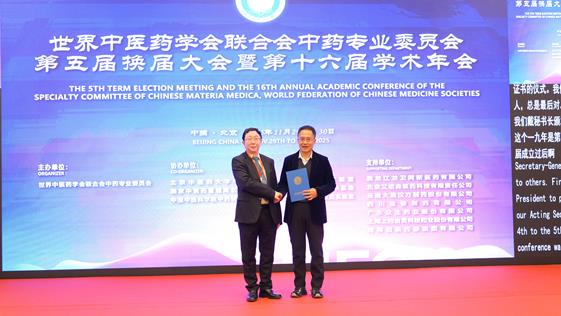 2025年11月28日至30日,世界中联中药专业委员会第五届换届大会暨第十六届学术年会在北京成功召开。大会由世界中联中药专业委员会主办,北京中医药大学中药品质评价北京市重点实验室、国家中医药管理局北京中医药大学中药炮制技术传承基地、中国中医科学院中药研究所道地药材与品质保障全国重点实验室协办。大会组委会邀请来自中国大陆、中国香港、中国台湾、中国澳门、日本、美国、保加利亚、葡萄牙、埃及、瑞典等近150位中医药专家学者,包括中药新药研究专家、企业精英,以及从事中药生产、流通、临床应用及相关领域的专家学者共同参加。
