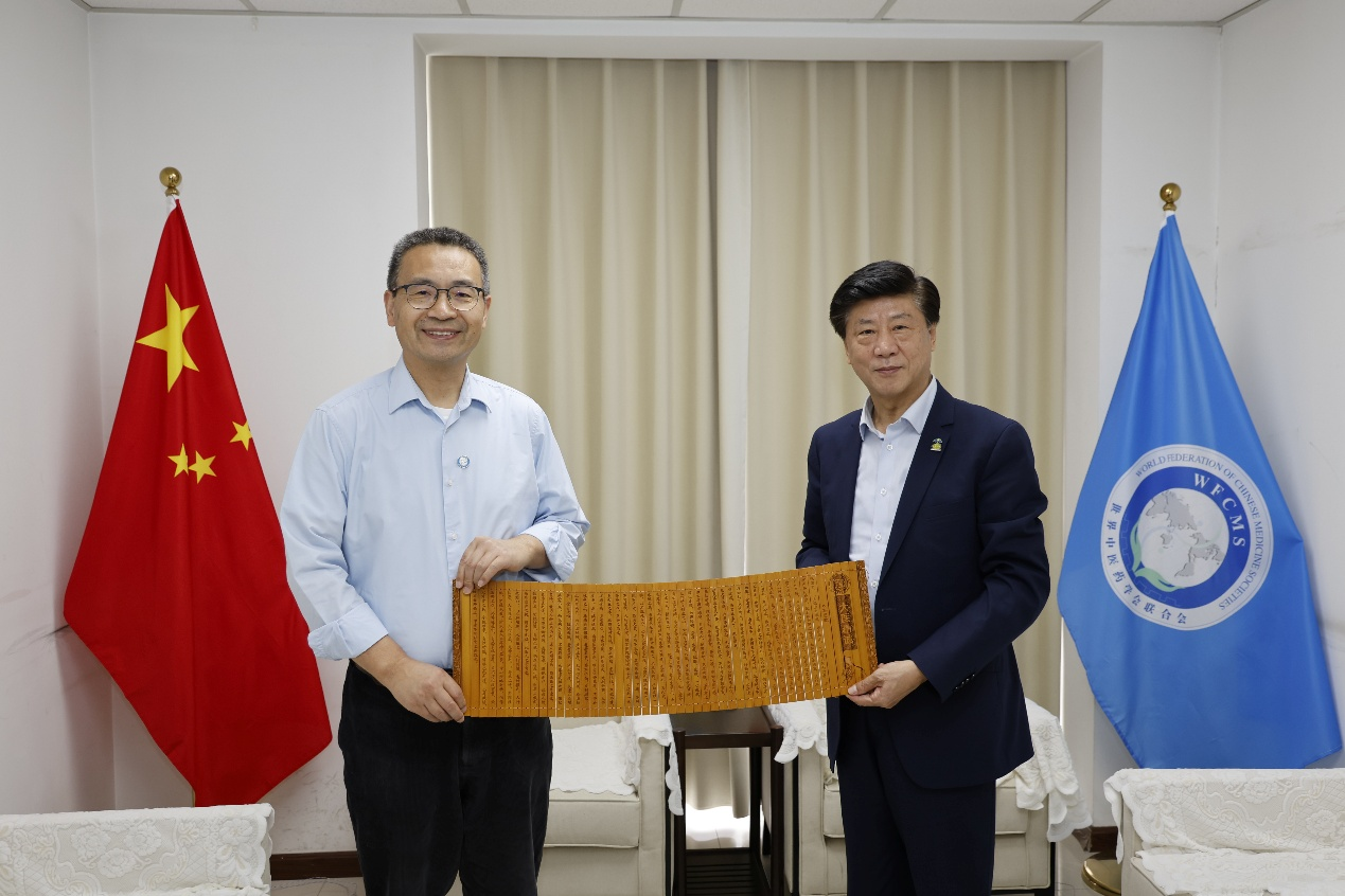会谈中双方互赠礼品,传递携手传承中医药文化、共促中医药国际化发展的共识。