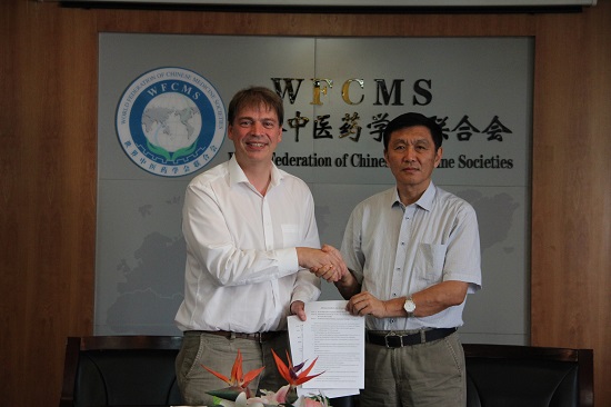 2017年6月20日,为推动中医药在欧洲发展,世界中联桑滨生秘书长与德国汉堡大学附属埃彭多夫医院之汉莎美安中医中心主任施罗德先生就共建欧盟中草药注册平台等事宜签署合作备忘录。