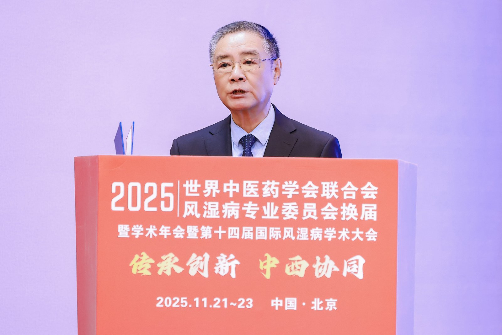 2025年11月22-23日,世界中医药学会联合会(以下简称世界中联)风湿病专业委员会第四届换届大会暨2025年学术年会在北京隆重举行。本次大会以“传承创新,中西协同”为主题,来自全球20多个国家和地区的近600位中医药风湿病领域的专家学者、临床医生及科研人员齐聚一堂,共绘风湿病中医药防治事业的新蓝图。
