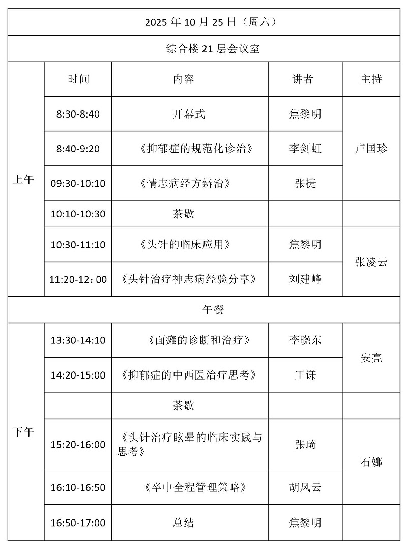 四、会议主题:头针治疗脑病、神志病的诊治经验。