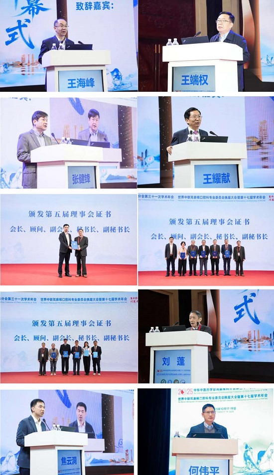 2025年10月17-19日,世界中联耳鼻喉口腔科专业委员会换届大会暨第17届学术年会在郑州顺利召开。世界中医药学会联合会、中华中医药学会、河南中医药大学、河南省卫生健康委员会、河南中医药大学第一附属医院、河南省中医药学会、河南省中西医结合学会耳鼻喉科专业委员会相关领导出席。本次会议以"传承创新·国际协作"为主题,吸引了来自中国、日本、加拿大、英国、中国台湾等7个国家和地区的1100余名专家学者的深度参与,共同探讨耳鼻喉口腔科领域的前沿进展。