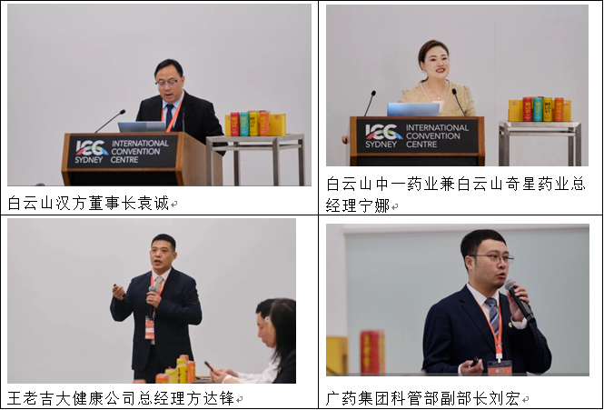 广药集团科管部副部长刘宏、王老吉大健康公司总经理方达锋、白云山中一药业兼白云山奇星药业总经理宁娜、白云山汉方董事长袁诚,围绕广药集团科技创新及发展概况、王老吉国际化战略实践、中一药业中医药数字化创新实践、汉方药业中医药现代化创新实践分别作主旨演讲,全面展现了广药集团在中医药创新发展中的探索与成果。