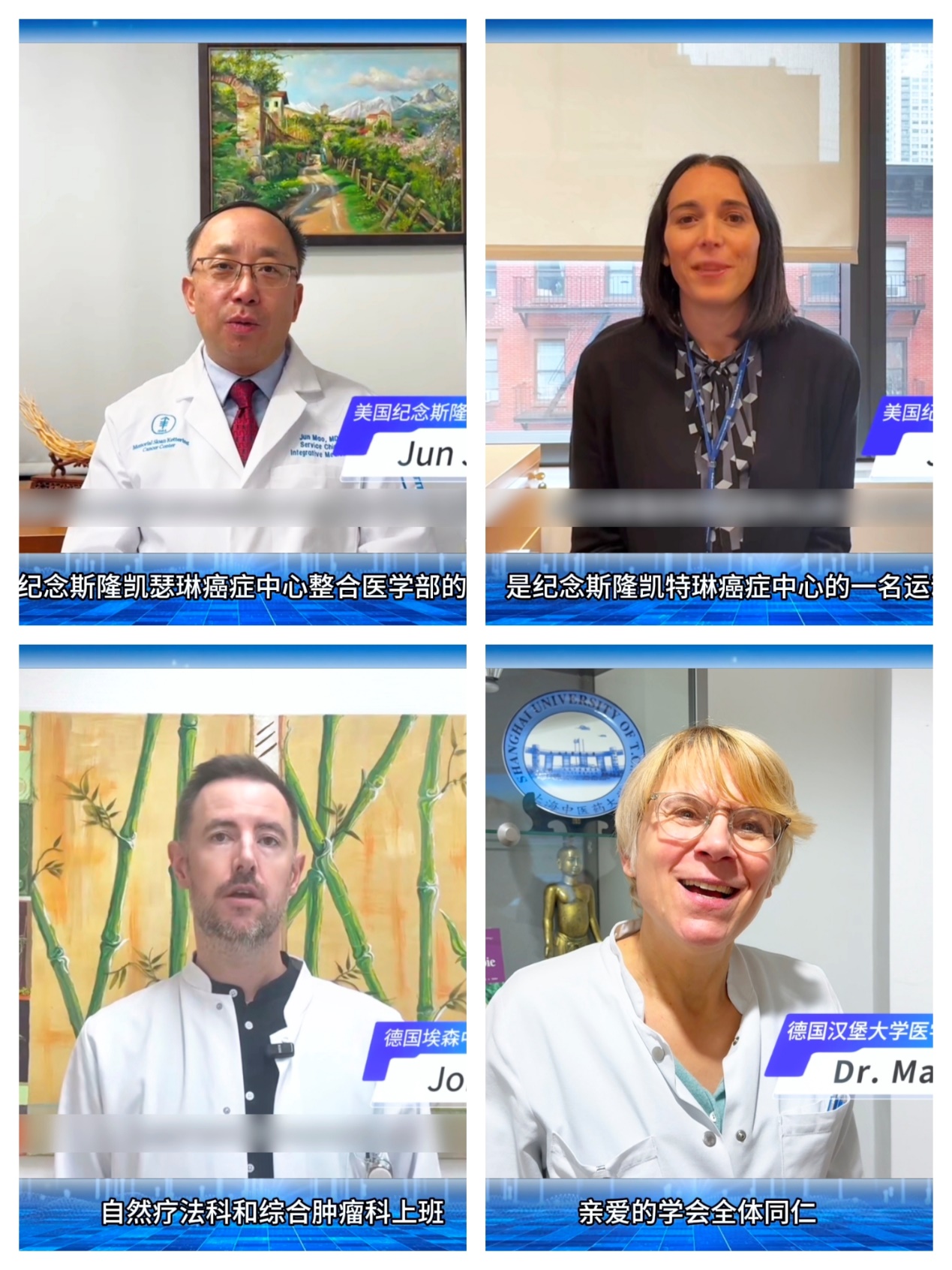 开幕式上,美国纪念斯隆凯瑟琳癌症中心整合医学部主任Jun Mao教授、运动医学专家Jessica Scott教授,以及德国埃森中心医院专家Jonas Vasner教授、汉堡-埃彭多夫大学医院肿瘤科Marianne Sinn教授通过线上视频为大会发来祝贺。